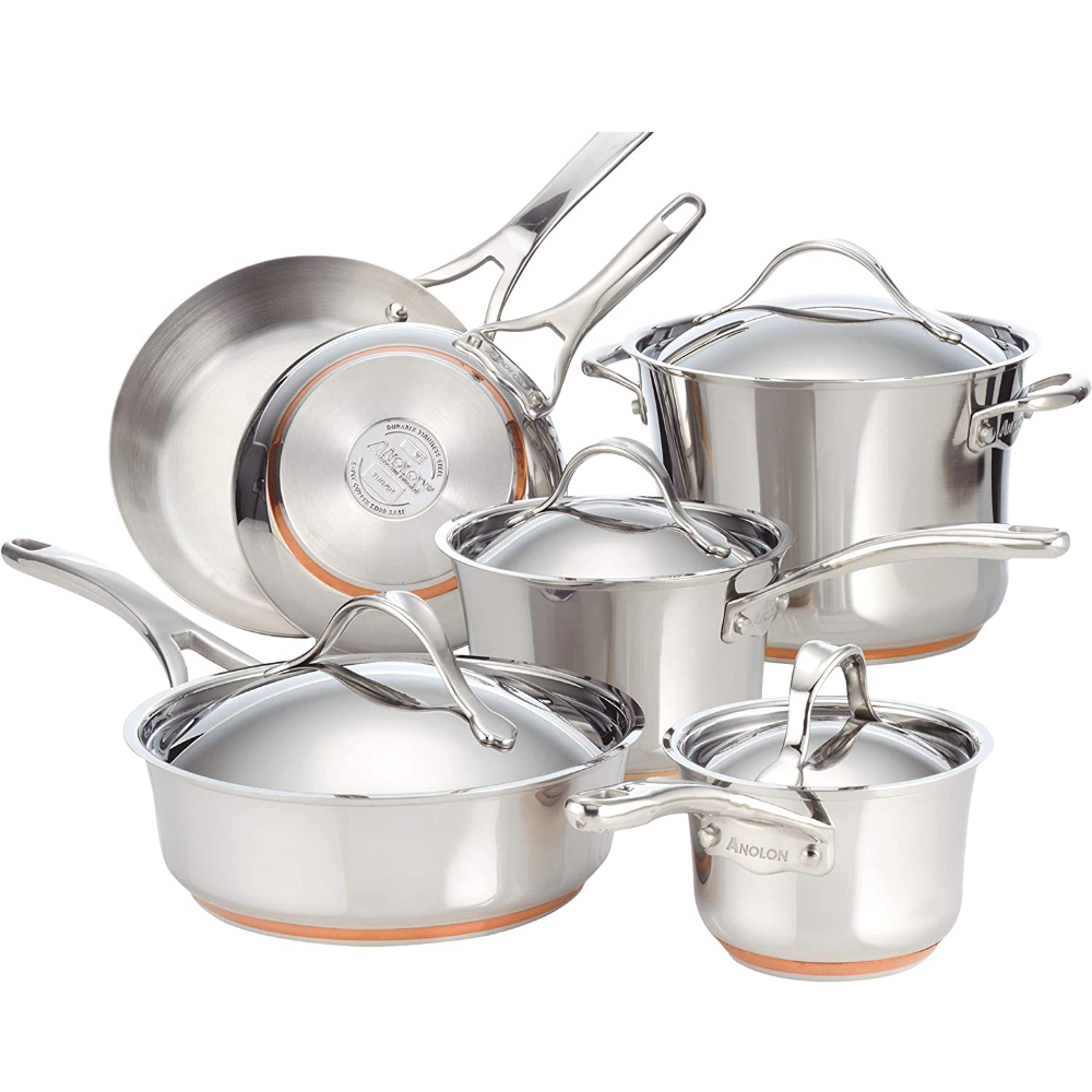 Anolon Nouvelle Stainless Steel Cookware Pots and Pans Set, 10 Piece