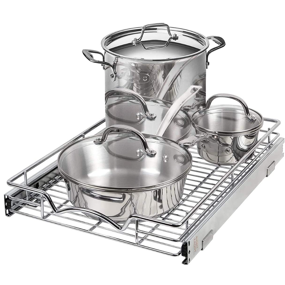Another great way to keep your kitchen tidy is with a pull-out drawer organizer.