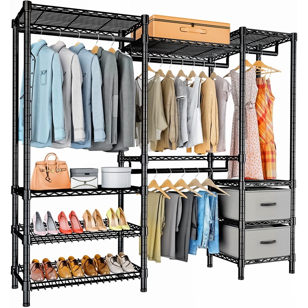 VIPEK V8 Wire Garment Rack 5 Tiers Heavy Duty Clothes Rack with 2 Fabric Drawers & Shoes Racks, Freestanding Wardrobe Closet Metal Clothing Rack
